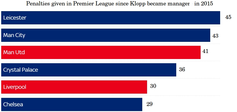 At the beginning of the period of Jurgen Klopp, the ratio is even in favor of Liverpool, but if you take the last two and a half seasons, the German is right in his statement. As of August of the 2018/19 season, Manchester United have received 32 penalties against the aforementioned 30 for Liverpool since October 2015.